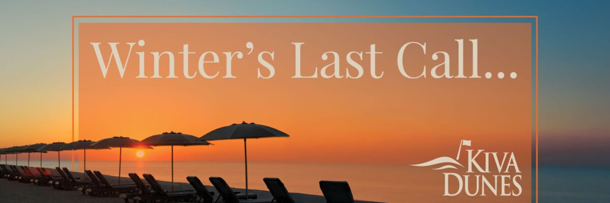 From now through February 28, 2026, enjoy 25% off all Kiva Dunes vacation rentals when you book and stay during our Winter’s Last Call special. It’s the perfect opportunity for a spontaneous getaway or a long weekend retreat before spring arrives.